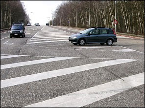 ![]() | Parfois, à côté des bandes de circulation ou sur certaines parties de la chaussée, de larges lignes sont pein-tes en diagonale. Ce sont des zones d'évitement. Sur une zone d'évitement: