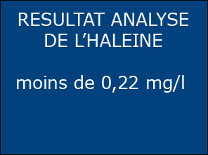 ![]() | Le résultat de l'analyse de l'haleine est inférieur à 0,22 milligramme d'alcool par litre d'air expiré:
